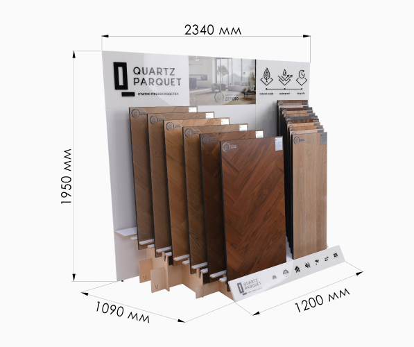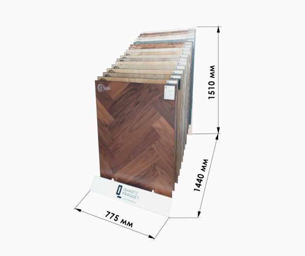 Свотчи коллекций «Классик», «Английская Ёлка» и «Штучный паркет» включают все мини-образцы дизайнов кварцевого паркета. Их удобно брать с собой на встречи.