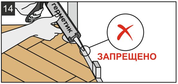 14.3. При любом способе укладки запрещено ходить по свежеуложенному покрытию в течение 2 часов. Мебель в помещении можно расставлять не менее чем через 48 часов после окончания работ.